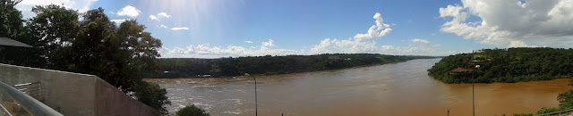 A Puerto Iguazù c'è un posto che è chiamato Hito de le tres Fronteras. Si tratta del posto dove l'Iguazù si diparte dal Paranà. Tre nazioni confinano in un triangolo di acqua. Guardando dal mirador argentino si vede da una parte il Brasile e dall'altra il Paraguay. Su ciascuno di questi mirador di confine si ergono delle piramidi colorate con i colori nazionali.