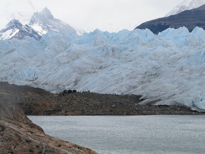 Appena in lontananza si intravede il Perito Moreno ci precipitiamo tutti in coperta per fotografarlo come se nel giorno non avremo mille occasioni di fotografare ogni fenditura che si mostra nell'enorme fronte.